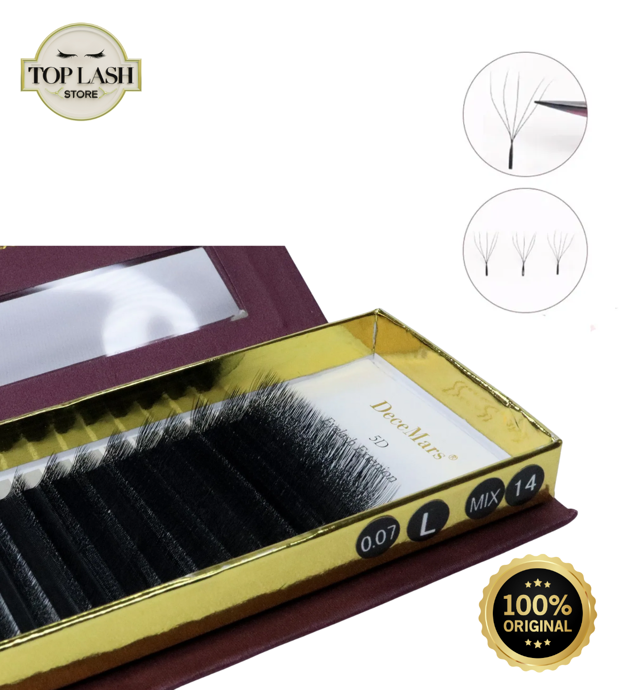 Cílios DeceMars W 5D Mix 8 a 14mm Curvatura L 0.07 Original–Extensão de Cílios