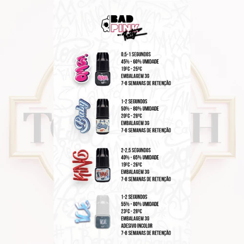 ✔ Cola Bad Pink King – Fixação extrema e durabilidade impressionante, redefinindo o padrão de excelência para lash designers. Sua fórmula inovadora garante retenção superior de até 8 semanas, além de minimizar a ardência durante a aplicação, proporcionando uma experiência mais confortável e segura. Ideal para profissionais que buscam precisão, resistência e alta performance no alongamento de cílios.